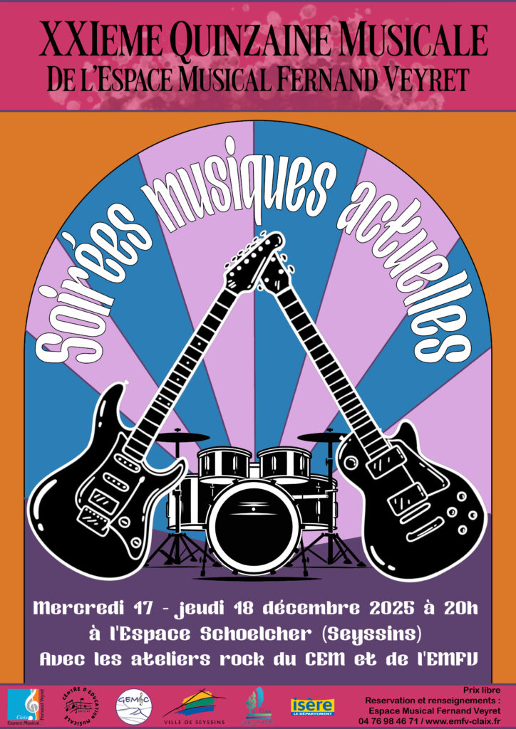 Le même jour à 20h, les ateliers rock du CEM et de l’EMFV se produiront à l’Espace Shoelcher de Seyssins.