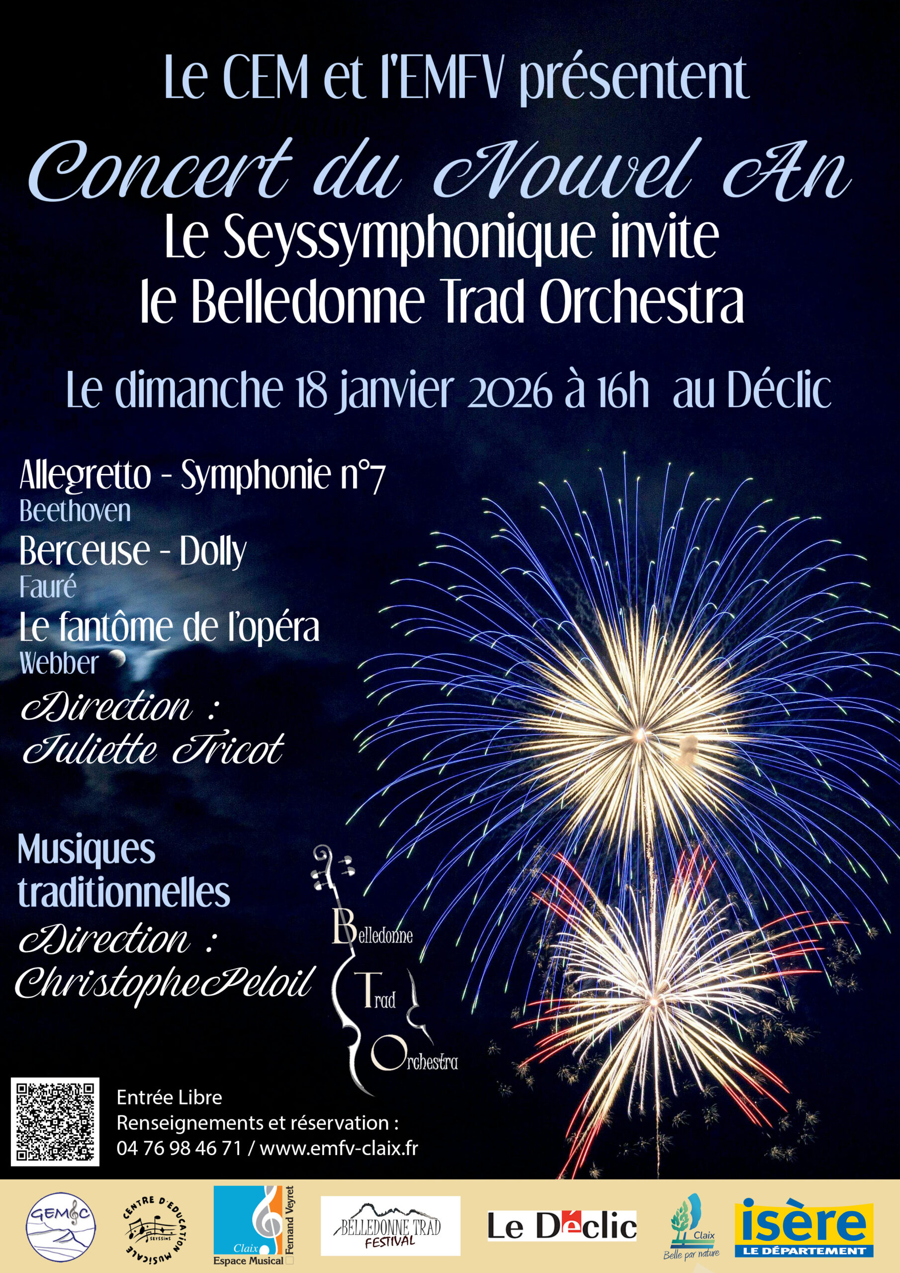 – le Seyssymphonique et le Belledone Trad Orchestra vous donnent rendez-vous le dimanche 18 janvier à 16h au Déclic pour un beau moment musical autour de Beethoven, Fauré et Webber.